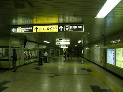 浅草線の東日本橋駅から当駅の二つの改札を通って総武線の馬喰町駅まで、ひたすら地下通路で繋がっています。
