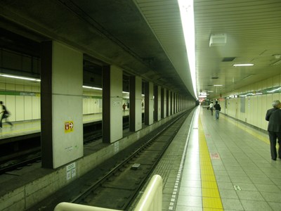 相対式2面2線の線路配置ですが、東日本橋駅とは違って改札より下の階にあります。