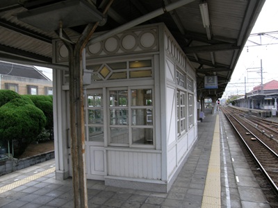 [ 浜寺公園駅 はまでらこうえんえき ] 大阪府堺市西区 浜寺公園駅はその名の通り浜寺公園の最寄り駅です。浜寺海岸は戦前大きくにぎわった地域で、阪堺や阪和と南海はこの浜寺への乗客を巡って熾烈な競争を繰り広げていました。そのため後に東京駅を設計することになる辰野金吾が設計した重厚な洋館駅舎が建てられ、折り返し設備なども設けられました。 しかし戦後は急行も通過する中間駅の一つとなり、大きな駅舎だけが残る追い越し可能駅となりました。もともと折り返し設備があったところを退避線としたため変則的な線路配置で、下りホームは単純な島式1面2線ですが、上りホームは切り欠きホームに待避線が設けられています。また、文化財に登録されている西口駅舎の反対側には小さな東口駅舎も設けられています。 現在高架化の計画があり、隣の諏訪ノ森駅と同様に駅舎の今後が心配されていましたが、高架化後の駅前広場に移設されることが決定されました。 |